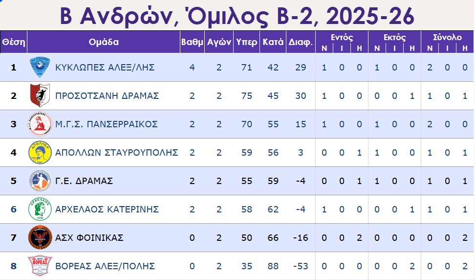 Σε αναβληθέν παιχνίδι του Β΄ ομίλου [2ος υποόμιλος] οι Κύκλωπες Αλεξανδρούπολης νίκησαν τον Βορέα Αλεξανδρούπολης με 38-18 και ανέβηκαν στην πρώτη θέση της βαθμολογίας.