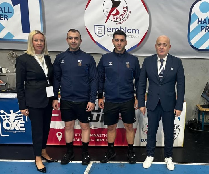 Στη φωογραφία οι διαιτητές του αγώνα Κινατζίδης-Φωτακίδης με τους παρατηρητές Σοφία Σίσκου και Γιώργο Ανταλή.