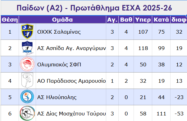 Η Σαλαμίνα νίκησε τον Δία Μοσχάτου με 38-15 για το παιδικό πρωτάθλημα 2 της ΕΣΧΑ.