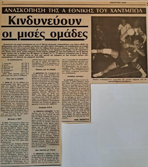 5 Ιανουαρίου 1984 το β΄ μέρος της ανασκόπησής μου, του 2ου πρωταθλήματος της Α΄ Εθνικής ανδρών στην Αθλητική Ηχώ, το οποίο κατέκτησε ο Ιωνικός Νέας Φιλαδέλφειας [για 2η φορά] και ήταν ο 5ος συνεχόμενος τίτλος πρωταθλητή Ελλάδος [είχε κατακτήσει και τα τρία πρωταθλήματα 1979, 1981,1982 σε μορφή Πανελλήνιων πρωταθλημάτων].