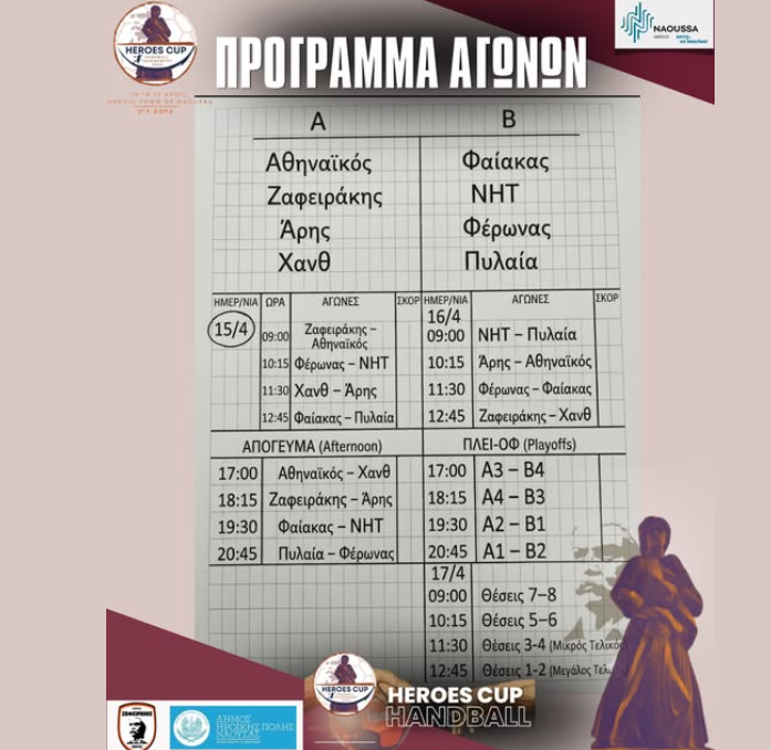 15-17 ΑΠΡΙΛΙΟΥ ΤΟ HEROES CUP ΣΤΗ ΝΑΟΥΣΑ