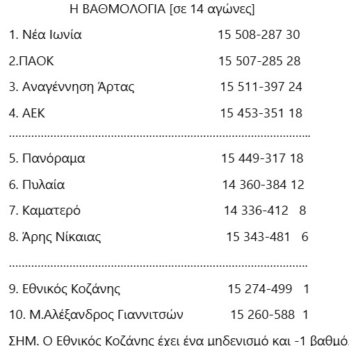 Η ΑΕΚ στο ΟΑΚΑ με όγδοο παίκτη τους φιλάθλους της [ελεύθερη είσοδος] υποδέχεται την 3η Αναγέννηση Άρτας η οποία είναι μεν αδιάφορη βαθμολογικά αλλά παίζει πάντα για την νίκη. Για την ΑΕΚ είναι απαραίτητη η νίκη η ακόμη και η ισοπαλία που θα της δώσει απόσταση βαθμολογική απο το Πανόραμα που έχει δύσκολο αγώνα στα Πευκάκια με την πρωτοπόρο και αήττητη Νέα Ιωνία.