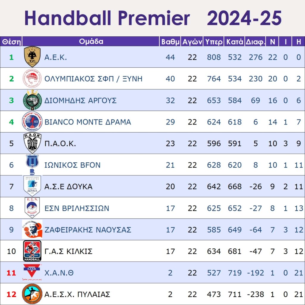 Η ΑΕΚ νίκησε στην Δράμα με 30-28 και τελείωσε με ρεκορ 22-0 στην κανονική διάρκεια της Handball Premier. Ο Φρεντερίκ Μπουζόν μετά το παιχνίδι του Σαββάτου στην Βοσνία με την Ίζβιντατς, έδωσε ρεπό σε πολλούς παίκτες του για ξεκούραση, αλλά αυτό δεν εμπόδισε την 11δεκάδα που πήρε μαζί του να πάρει την νίκη μέσα στην Δράμα.