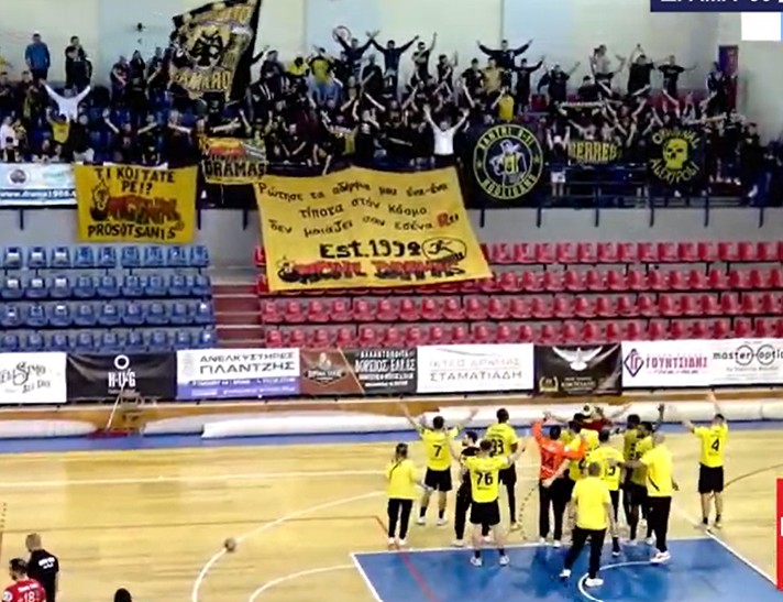 Η Δράμα πλησίασε στο 58:36 με τον Σίνα 27-26 αλλά ο Σακό πήγε την διαφορά πάλι στα δύο γκολ 28-26 για να πάρει την νίκη η ΑΕΚ με 30-28 μέσα σε χορούς που είχαν στήσει στο πάνω διάζωμα του Κραχτίδης οι φίλοι της. Μετά το τέλος του αγώνα η 11κάδα των παικτών της ΑΕΚ ανέβηκε κοντά τους και για 15΄ λεπτά πανηγύριζαν όλοι μαζί.