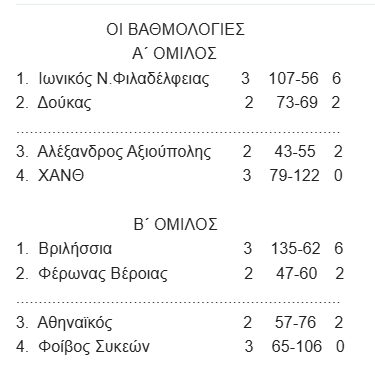 Μεγάλη Δευτέρα 6/4/2026 – 2η αγωνιστική: Ιωνικός Ν.Φ. – Αλέξανδρος Αξιούπολης 32-10, ΧΑΝΘ – Δούκας 34-49.