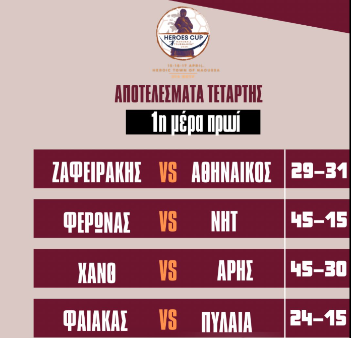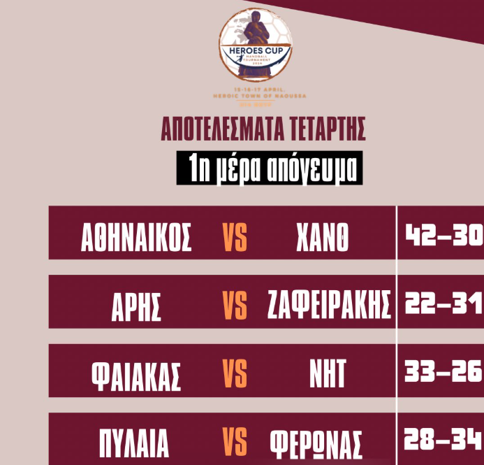 ΔΙΠΛΕΣ ΝΙΚΕΣ ΓΙΑ ΑΘΗΝΑΙΚΟ, ΦΕΡΩΝΑ ΚΑΙ ΦΑΙΑΚΑ ΣΤΟ HEROS CUP ΤΗΣ ΝΑΟΥΣΑΣ
