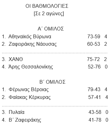 Ο Αθηναικός Βύρωνα [στη επάνω φωτογραφία] ξεκίνησε με δυο νίκες. Νίκησε τον Ζαφειράκη με 31-29 και την ΧΑΝΘ με 42-30
