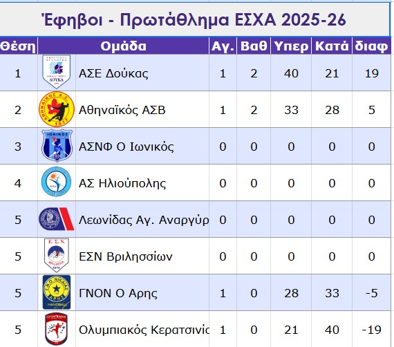 Με πρωταγωνιστή τον Κολεζάκη που πέτυχε 15 (!) γκολ η εφηβική ομάδα του Δούκα ξεκίνησε νικηφόρα τις αγωνιστικές της υποχρεώσεις στο πρωτάθλημα της ΕΣΧΑ επικρατώντας του Ολυμπιακού Κερατσινίου με 40-21.