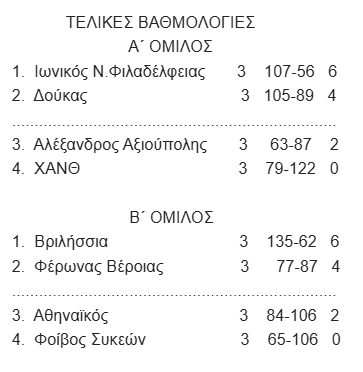 Φοίβος Συκεών – Αθηναϊκός 25-33, Βριλήσσια-Φέρωνας Βέροιας 39-19
