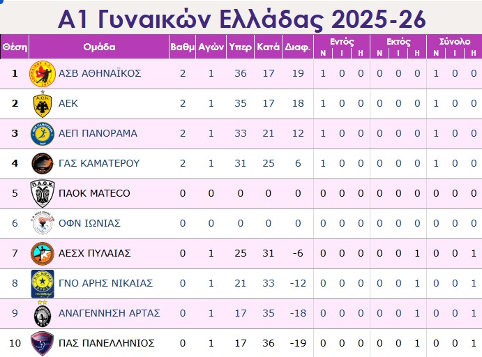 Με εντυπωσιακή νίκη ξεκίνησε στη πρεμιέρα της Α1 γυναικών ο Αθηναικός, νικώντας τον Πανελλήνιο Νεάπολης με 36-17. Ο Αθηναικός προηγήθηκε στο ημίχρονο με 15-7 για να πάρει εύκολα την πρώτη νίκη του έχοντας κορυφαία την Αγκολέζα τερματοφύλακα Κάρλα Μουλάμπα, η οποία ολοκλήρωσε το παιχνίδι με 15 επεμβάσεις σε 23 σουτ και ποσοστό 65%!