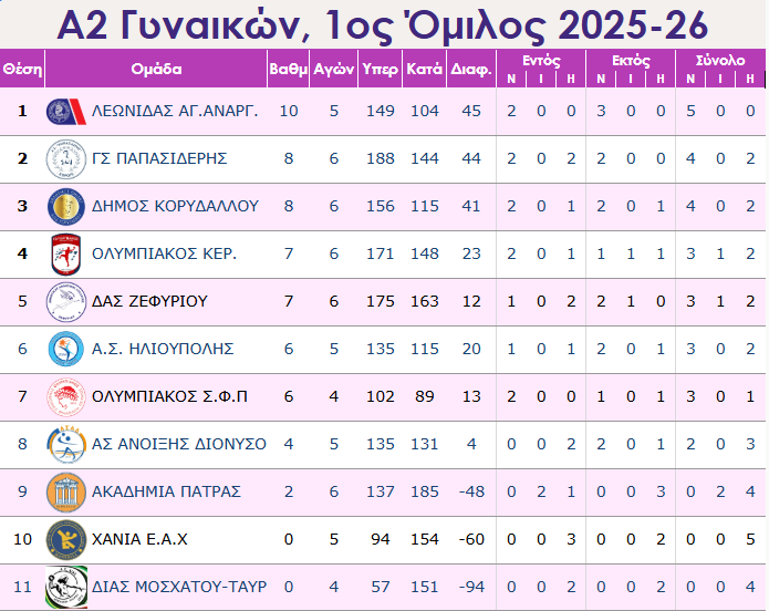 Η Άνοιξη Διονύσου νίκησε στη Πάτρα την Ακαδημία των Σπορ με 36-23 πετυχαίνοντας την 2η νίκη της στην Α2 γυναικών [1ος όμιλος].
