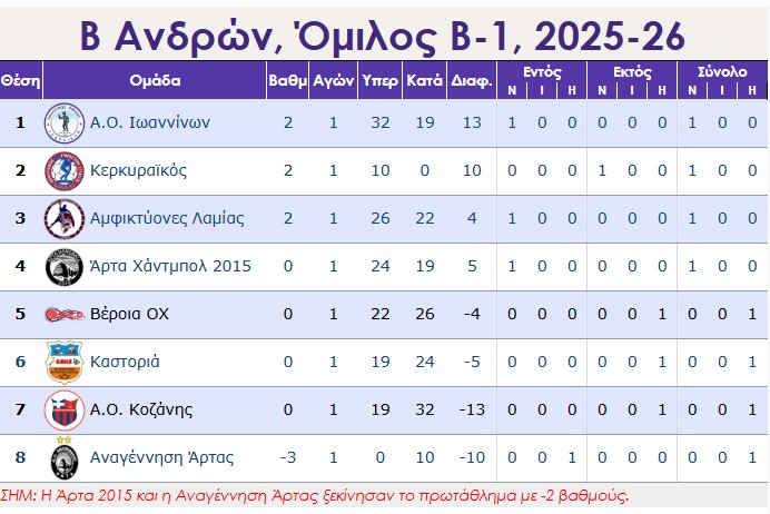 Η ΠΡΕΜΙΕΡΑ ΣΤΗΝ Β΄ ΕΘΝΙΚΗ ΑΝΔΡΩΝ ΚΑΙ ΟΙ ΒΑΘΜΟΛΟΓΙΕΣ