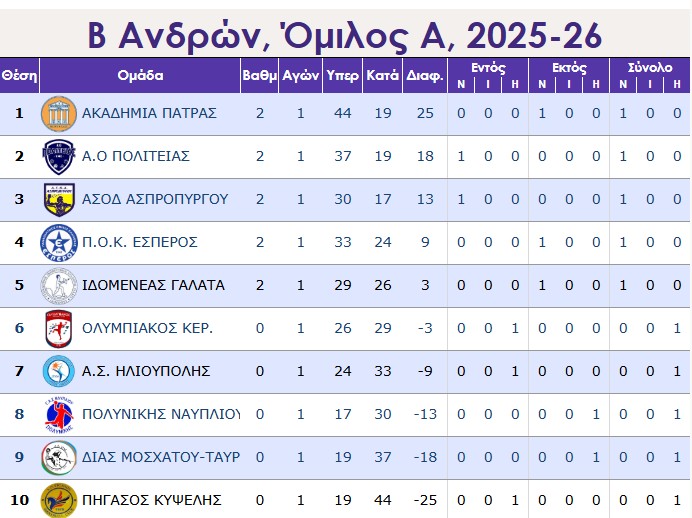Στην φωτο η ομάδα του ΑΣΟΔ Ασπρόπυργου η οποία νίκησε στην πρεμιέρα τον Πολυνίκη Ναυπλίου ο οποίος επανεμφανίστηκε στο πρωτάθλημα, με 30-17. Αποτελέσματα και βαθμολογίες στην Β΄ Εθνική ανδρών που έκανε πρεμιέρα το Σ/Κ: