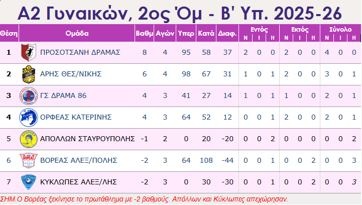 Άνευ αγώνος πήραν τους βαθμούς η ΓΕ Δράμας με τους Κύκλωπες και ο Άρης Θ. με τον Απόλλωνα Σταυρούπολης.