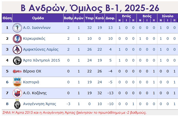 Στον Β΄ όμιλο [1ος υποόμιλος] αύριο Κερκυραικός και Ιωάννινα διεκδικούν την δεύτερη νίκη τους στο νησί των Φαιάκων, η Βέροια θέλει την πρώτη νίκη της απο την Καστοριά ενώ οι Αμφικτύονες Λαμίας διπλασιάζουν τις νίκες τους χωρίς αγώνα με την Αναγέννηση Άρτας που απεχώρησε.