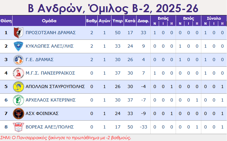 Στον 2ο υποόμιλο ξεχωρίζει την Κυριακή ο αγώνας ΓΕ Δράμας- Πανσερραϊκός που στοχεύουν την 2η νίκη τους. Να πούμε ότι ο Πανσερραικός νίκησε στην πρεμιέρα αλλά ισοσκέλισε τους -2 βαθμούς που του έχουν αφαιρεθεί απο το περσινό πρωτάθλημα. Στη Κατερίνη ο Αρχέλαος Κατερίνης θέλει την πρώτη νίκη του ενώ η πρωτοεμφανιζόμενη Προσοτσάνη να κάνει το 2-0.