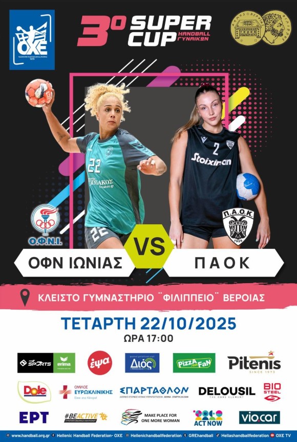 Αύριο Τρίτη 21 Οκτωβρίου 2025 και ώρα 13:00 στο “Φιλίππειο” της Βέροιας θα πραγματοποιηθεί η επίσημη συνέντευξη Τύπου του 3ου Σούπερ Καπ Γυναικών ΟΦΝ Ιωνίας- ΠΑΟΚ