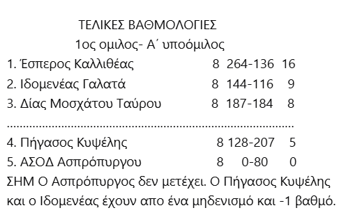 Αναλυτικά οι βαθμολογίες και το πρόγραμμα του Σ/Κ: