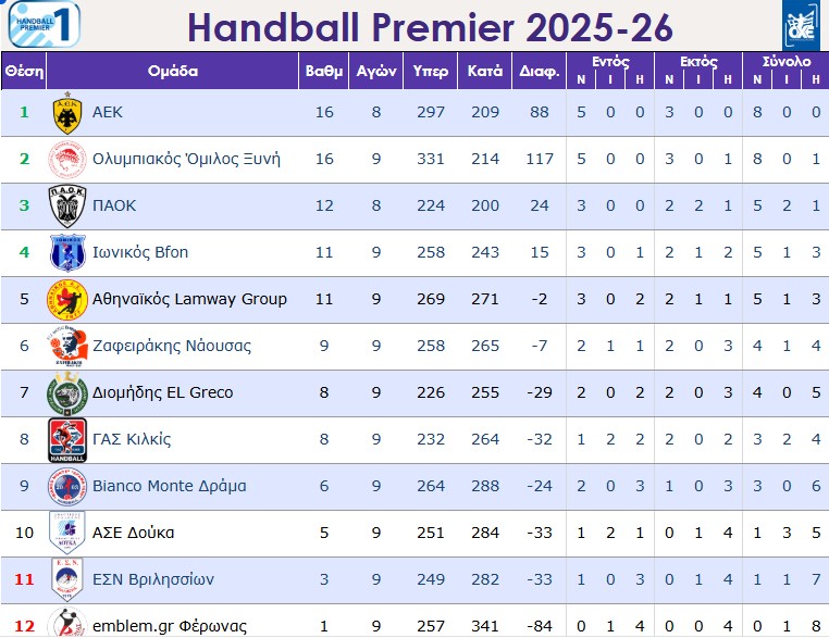 Ο ΠΑΟΚ επιστρέφει στη Handball Premier μετά από τον ευρωπαϊκό αγώνα στην Κωνσταντινούπολη με την Μπεσίκτας και βρίσκεται στην τρίτη θέση με 12 βαθμούς σε 8 αγώνες. Η ομάδα του Μπάμπη Ανανιάδη με 5 νίκες, δύο ισοπαλίες και μία ήττα στη πρεμιέρα απο τον Ολυμπιακό στην Ηλιούπολη, είναι αήττητη σε 7 σερί αγώνες και φιλοδοξεί να πάρει θετικό αποτέλεσμα, ξεπερνώντας την κούραση απο το Ευρωπαικό της αγώνα.