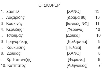ΙΩΝΙΚΟΣ ΝΦ: [Πάνος Ιατρούδης-Ευριπίδης Ναουμίδης], Καρούσης, Σαραβάνος 1, Κοσκινάς 11, Ραράκος 5, Κανέλλος 1, Ρούτσιας 1, Ιωάννου 1, Αθανασιάδης, Κωτόπουλος 4, Γουνόπουλος 3, Μακρόγλου 4, Ρουζίνος, Καρανίκος, Αλαίσκας, Ζάρδας 1, Καραγιάννης 3,