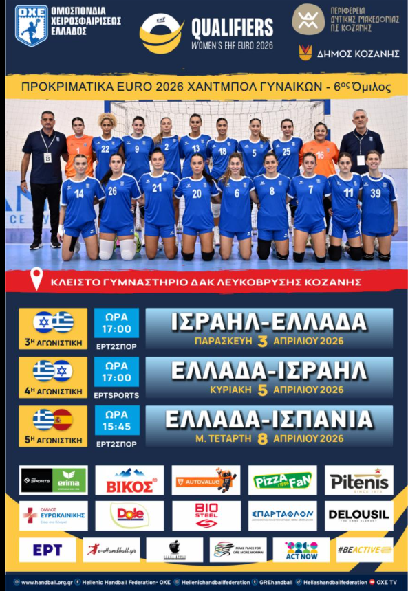 Αύριο Παρασκευή το πρώτο παιχνίδι με το Ισραήλ (17:00) και την Κυριακή 5/4 (17:00) το δεύτερο. Θα ακολουθήσουν οι αγώνες με την Ισπανία τη Μεγάλη Τετάρτη 8/4 (15:45), ενώ την Κυριακή του Πάσχα (19:00) θα αντιμετωπίσει στο Λιντζ την Αυστρία. Και οι δύο αγώνες θα μεταδοθούν απο την EΡΤSPORTS.