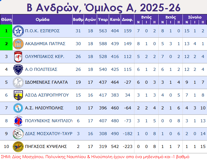 Ο Έσπερος Καλλιθέας “αποχαιρέτησε” με νίκη την Β΄ Εθνική, νικώντας στο Κερατσίνι τον Ολυμπιακό Κερατσινίου με 33-27 κατακτώντας την πρώτη θέση στον Α΄ όμιλο της Β΄ Εθνικής, με 2η την Ακαδημία Πάτρας.