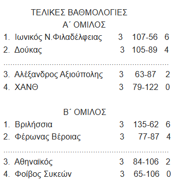 Φοίβος Συκεών – Αθηναϊκός 25-33, Βριλήσσια-Φέρωνας Βέροιας 39-19