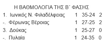 Ο Ιωνικός Ν.Φιλαδέλφειας νίκησε και την Πυλαία με 35-24 και προκρίθηκε αήττητος στην Β΄ φάση του 45ου Πανελλήνιου εφηβικού πρωταθλήματος στην Βέροια μεταφέροντας τους δύο βαθμούς που πήρε απο την Πυλαία η οποία ώς δεύτερη πέρασε και αυτή στην επόμενη φάση των μεταλλίων.