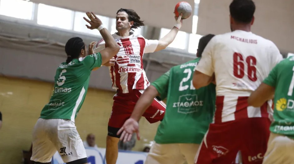 Ο Ολυμπιακός/Όμιλος Ξυνή νίκησε εύκολα 33-18 τον Διομήδη και έκανε το 1-0 στη σειρά των ημιτελικών της Handball Premier στην Ηλιούπολη και χρειάζεται μια ακόμη νίκη για να περάσει στον τελικό [ο δεύτερος αγώνας 17 Μαϊου στη Νέα Κίο].