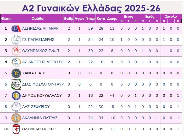 Χθές η Άνοιξη Διονύσου νίκησε τον Κορυδαλλό με 22-18 και ο Λεωνίδας Αγίων Αναργύρων τον Ολυμπιακό Κερατσινίου με 38-28.