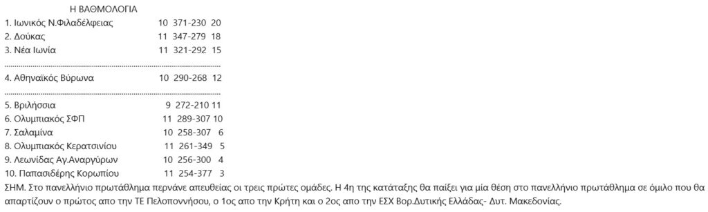 Σε εξ αναβολής αγώνα της 9ης αγωνιστικής για το παιδικό πρωτάθλημα της ΕΣΧΑ, ο Ιωνικός Νέας Φιλαδέλφειας νίκησε την Νέα Ιωνία εκτός έδρας με 38-21 και έκανε το 10-0.