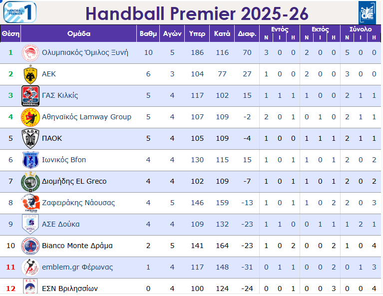 H 5η αγωνιστική της Handball Premier θα συνεχιστεί το Σάββατο 11 Οκτωβρίου 2025 με τρείς αγώνες και θα ολοκληρωθεί την Δευτέρα 13 Οκτωβρίου 2025 στο Φιλίππειο με τον αγώνα emblem.gr Φέρωνας- Aθηναϊκός Lamway Group