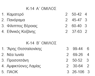 Στην κατηγορία Κ-14 συνεχίζουν αήττητες Καματερό, Άρης Θεσσαλονίκης και Νέα Ιωνία.