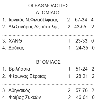Ιωνικός Ν.Φ. – Αλέξανδρος Αξιούπολης 32-10, ΧΑΝΘ – Δούκας 34-49.